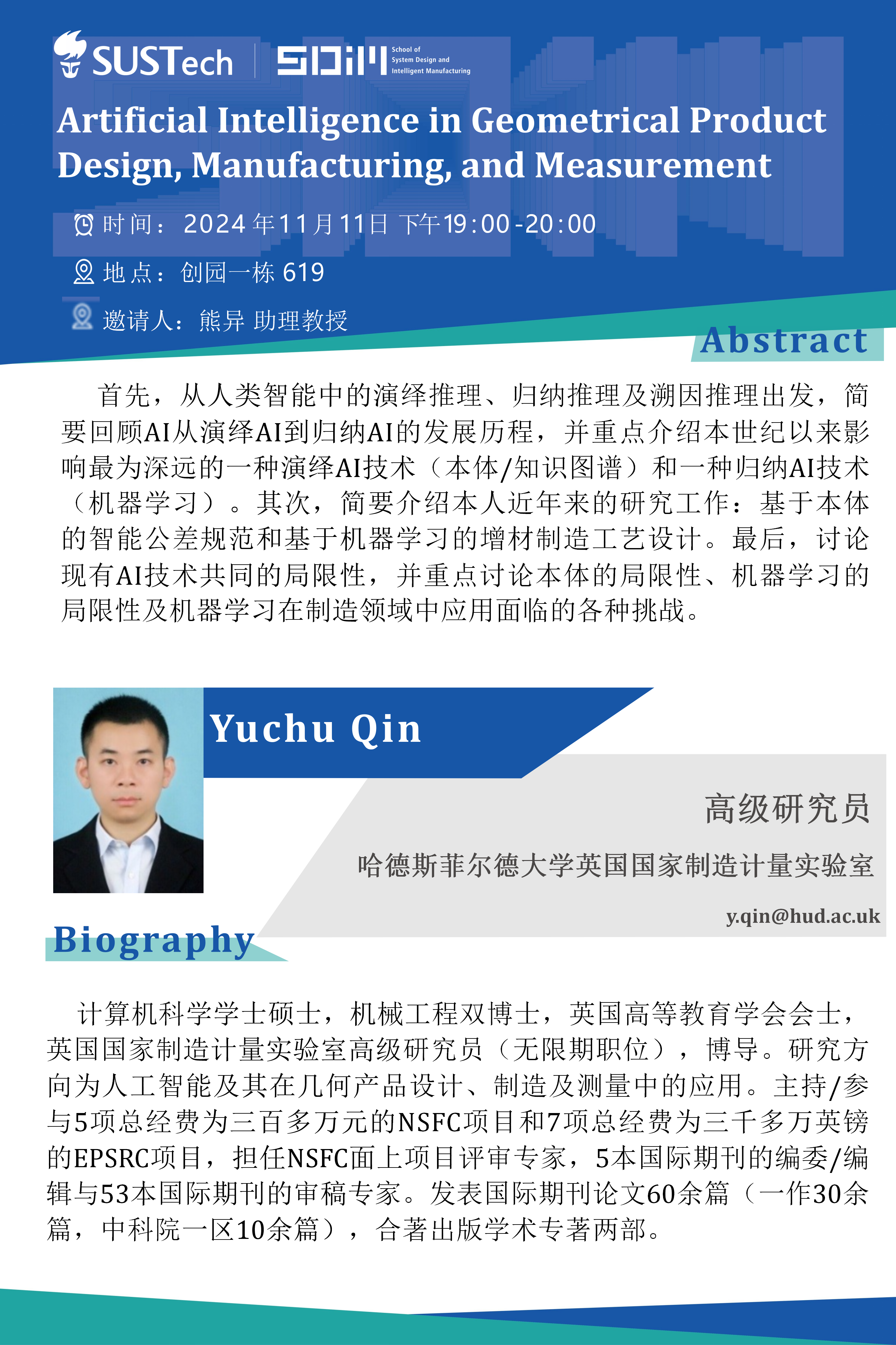 学术报告——Artificial Intelligence in Geometrical Product Design, Manufacturing, and Measurement